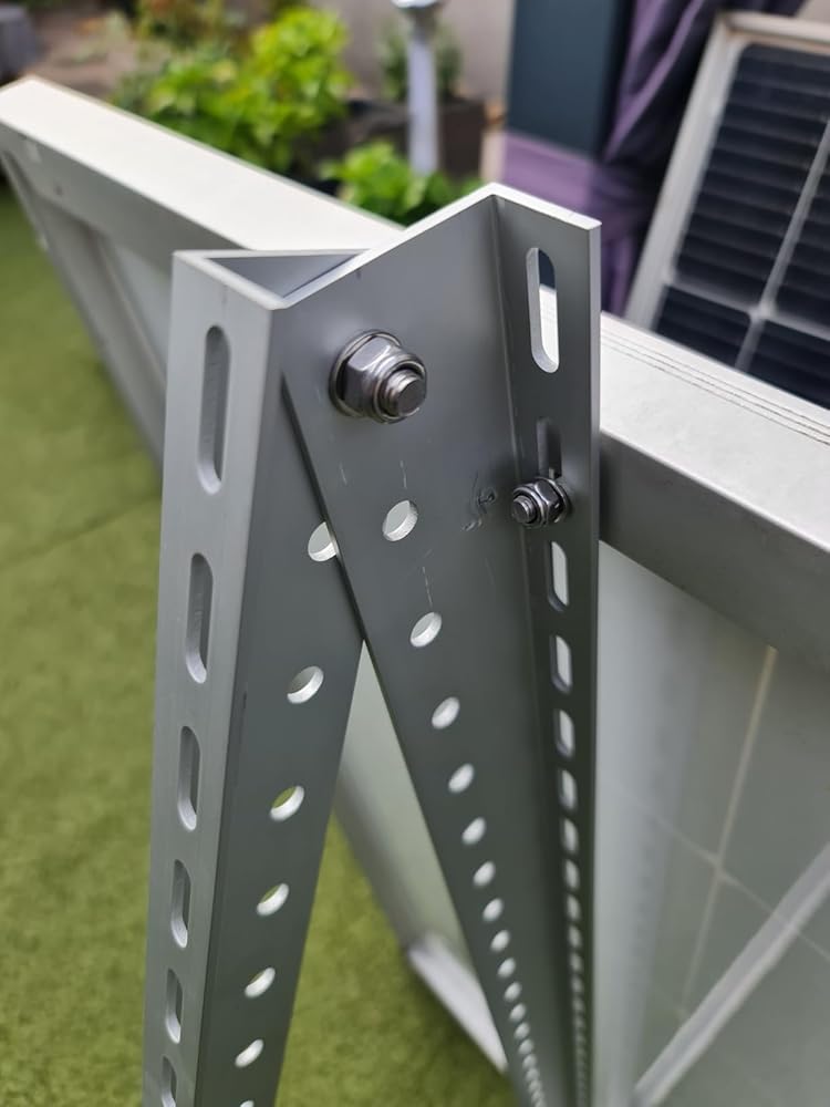 Unsere Solarhalterung aus 3 mm starken Aluminiumprofilen (Längen: 118,5 cm & 52,5 cm) sorgt für höchste Stabilität und sichere Montage – ganz ohne billige Kunststoffmuttern. Stattdessen kommen wertige, selbstsichernde Edelstahlschrauben zum Einsatz. Der Neigungswinkel ist flexibel einstellbar, um die Solarerträge ganzjährig zu optimieren.