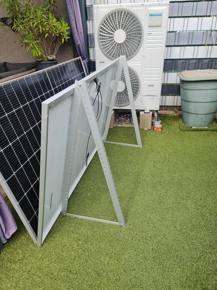 Die Halterung lässt sich schnell aufbauen und macht einen stabilen Eindruck. Im Lieferumfang sind alle Schrauben mit Sicherungsmuttern. Mit der Bedienungsanleitung kann man den Neigungswinkel von 0 bis 90 Grad einstellen. Meine Anlage steht im Garten, ich würde sie wieder kaufen