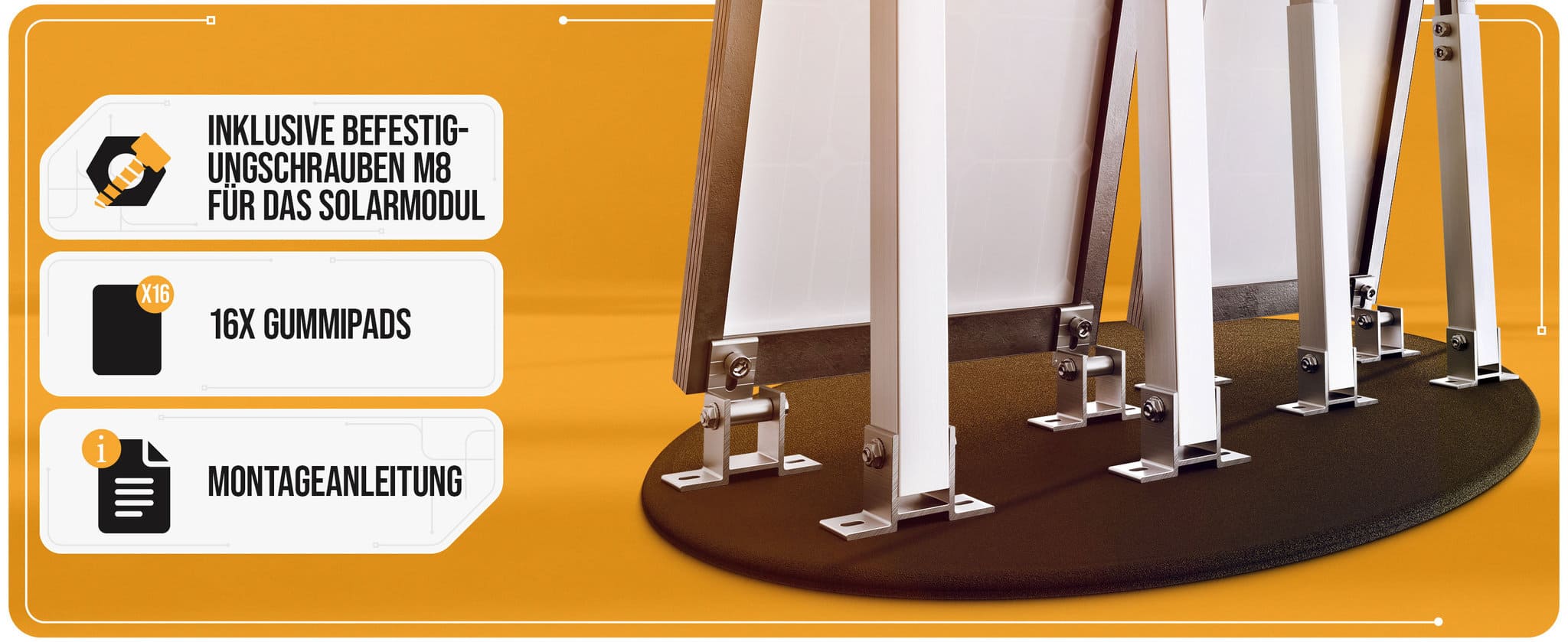 Die Halterung für Photovoltaikmodule ist universell einsetzbar, schnell montiert und ideal für Solarmodule aller Größen. Eine bebilderte Anleitung liegt bei und macht die Installation besonders einfach.
